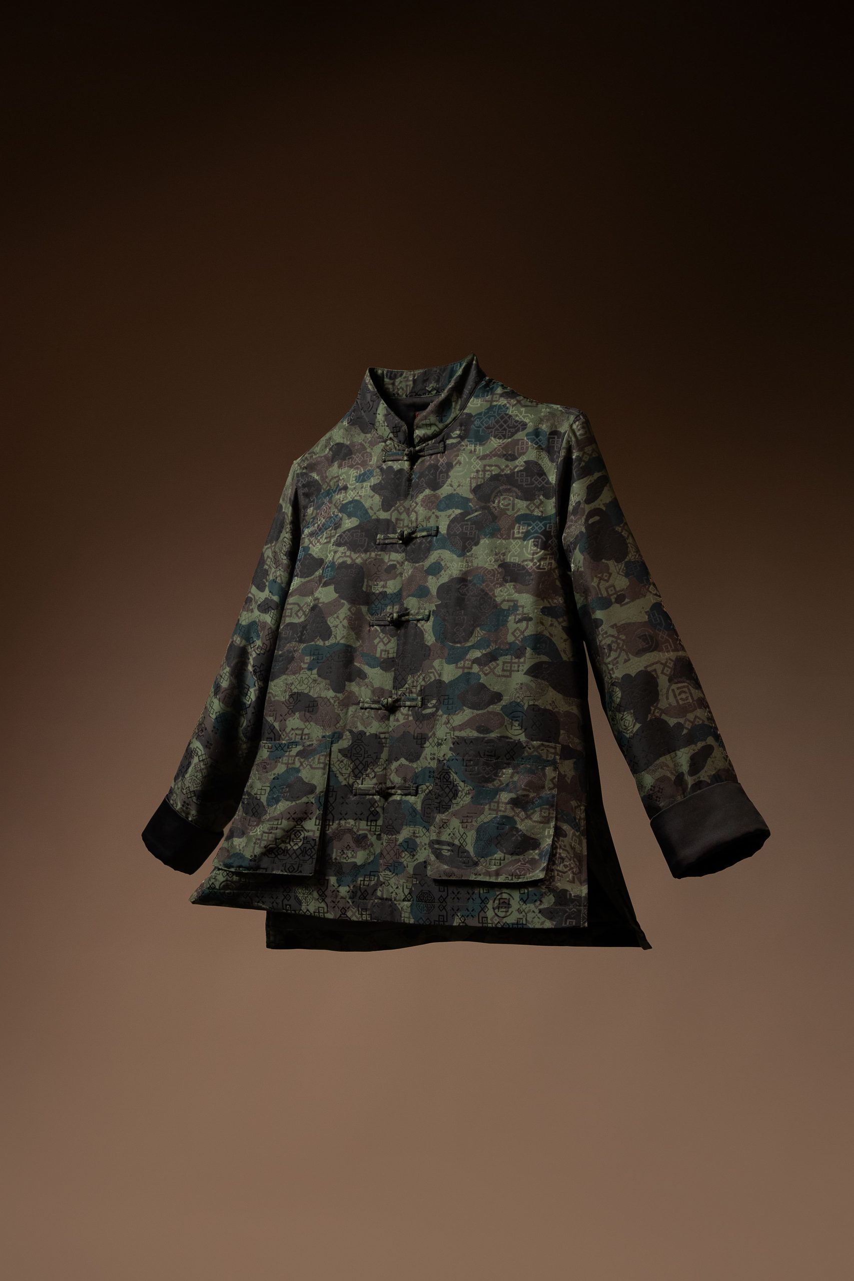 To mark this highly anticipated collaboration, CLOT and BAPE® join forces to reimagine the classic Chinese Silk Padded Jacket, fusing CLOT’s signature Silk Royale pattern with BAPE®’s iconic 1ST CAMO, creating a striking contrast between the two legendary design elements and seamlessly blending the opulent texture of traditional silk with contemporary streetwear aesthetics.