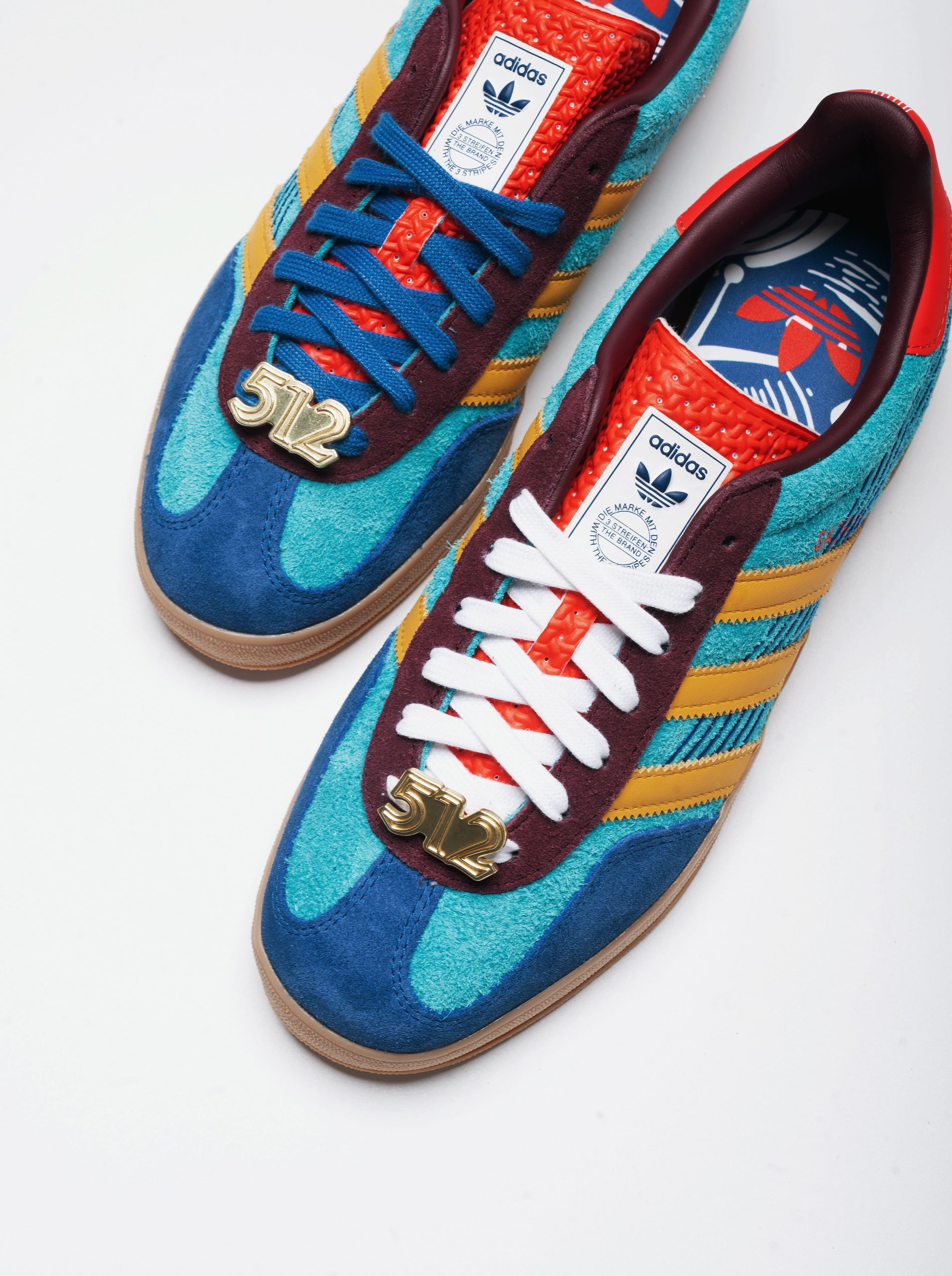 Arriving at the heart of Weekend 2 of Austin City Limits, the silhouette’s design cues nod to Austin’s rich blues culture. The sneaker comes in a suede upper dipped in five shades of blue. A red tongue and yellow Three Stripes complement the palette, mirroring Antone’s nightclub’s legendary entrance, where Stevie Ray Vaughan, Ray Charles, and other icons cut their teeth on its stage.  A matching set of 512 lace charms, a direct callout to the city that Kicking It calls home, rounds out this wonderful sneaker.
