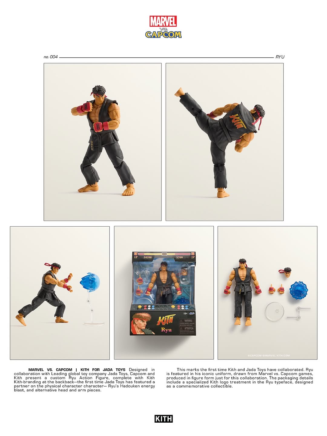 The action figures, made in collaboration with Jada Toys, feature articulated arms and legs inspired by the iconic Street Fighter characters. Each character features at least three accessories to make your figure truly your own. Though KITH is no stranger to an action figure or collectable collaboration, this action figure collection will mark the first time Jada Toys joins the fray.