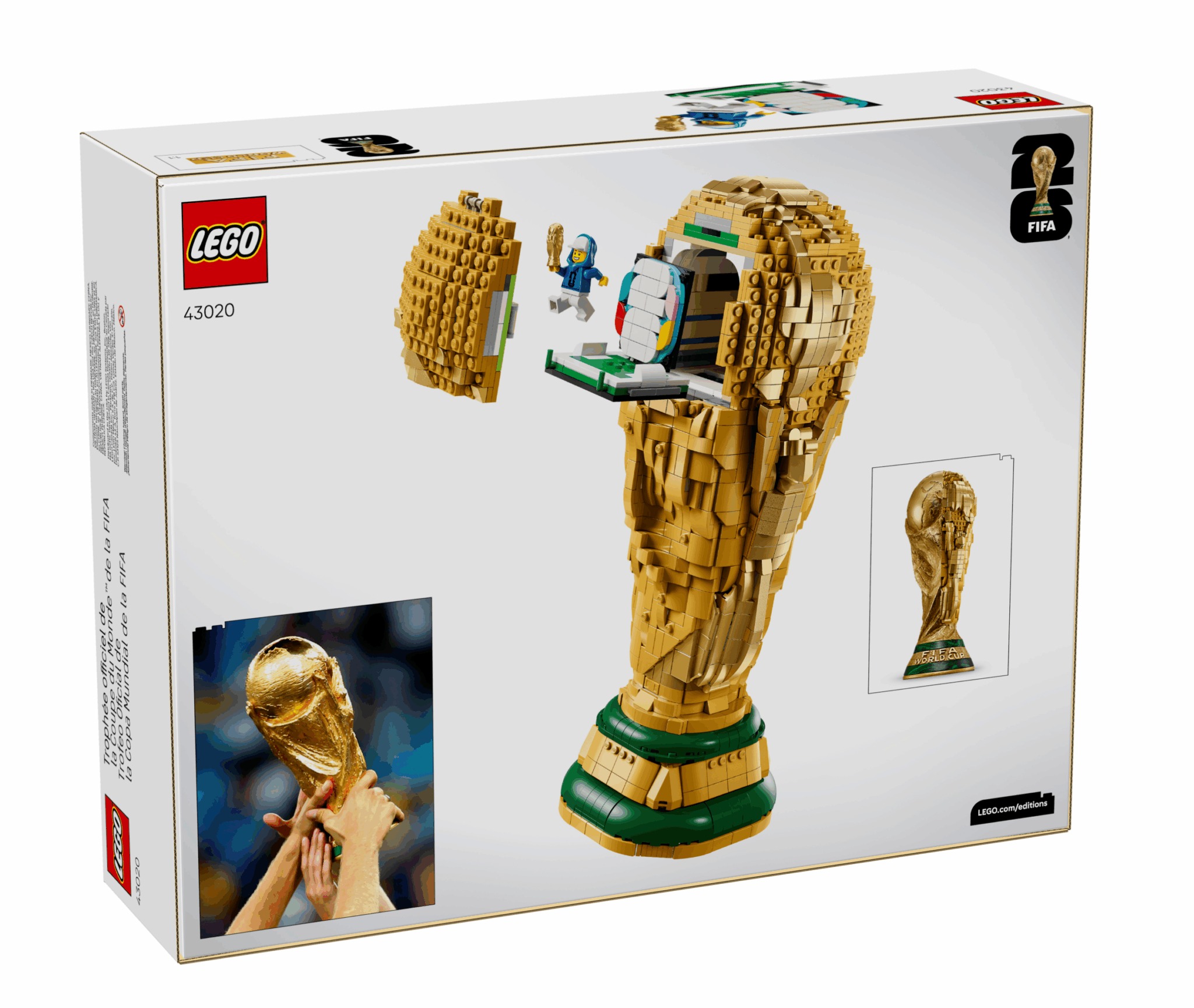 Launching in March 2026, this first-ever, official 1:1 detailed replica of world football’s ultimate prize allows fans to bring home a golden piece of the tournament’s magic and display their passion for football ahead of next summer’s biggest global sporting event. The impressive trophy, made of 2,842 LEGO pieces, includes a hidden scene which can be opened via a pullable slip in the upper globe section.