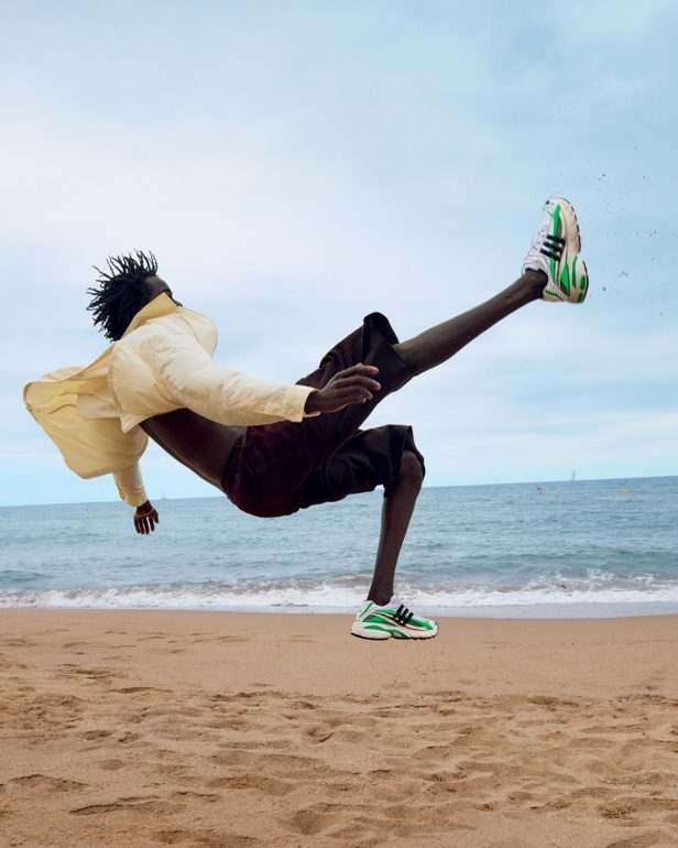 The design reimagines the classic adidas Adistar through Pharrell’s lens, blending performance roots with sculptural, futuristic style. Its exaggerated midsole draws from the floating of a jellyfish, while layered mesh and exoskeletal details add depth and movement. Custom “Jellyfish” and “VIRGINIA” touches tie the story back to Pharrell’s creative world.