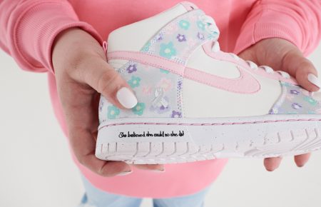 Macey’s take on the Nike Dunk High is sweet. Literally. Her positivity is evident throughout her flower-powered shoe, with the all-over print drawn by Macey…