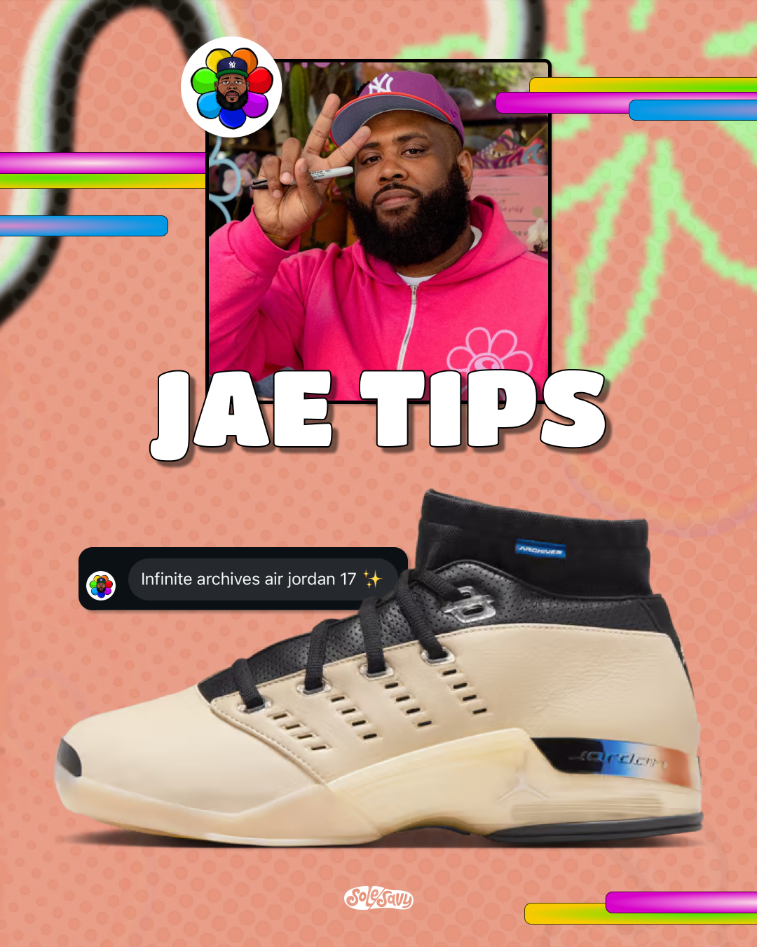 Jae’s selection is no surprise. Infinite Archives spent the beginning of 2025 celebrating the often underappreciated legacy of the Air Jordan 17. Their honest storytelling and frankly great colorway execution led to one of the most beloved Jordan releases of 2025. That is saying a lot when you consider the model of choice was the oftentimes overlooked Air Jordan 17