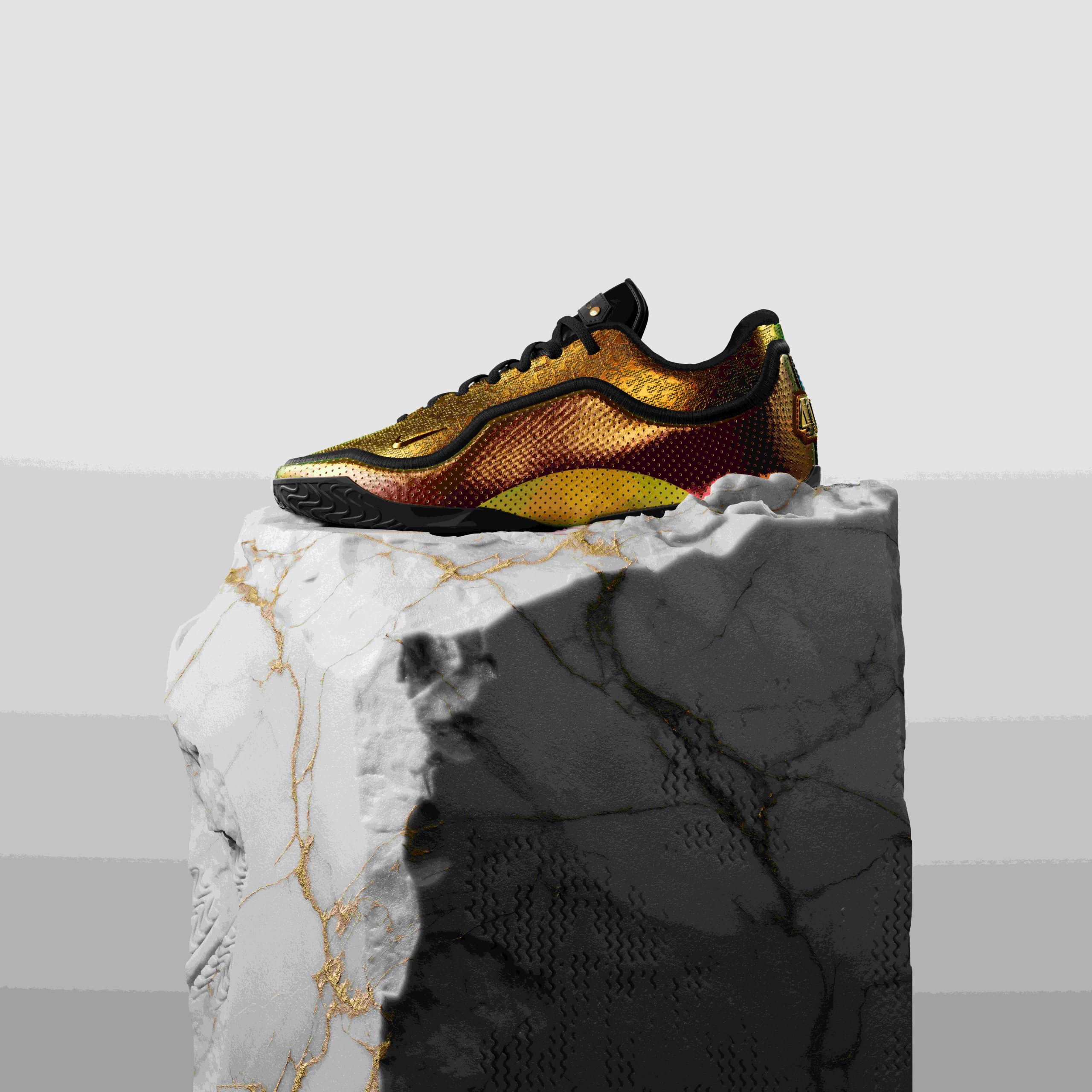 First revealed last month, the debut colorway is being dubbed the ‘Uncharted’ colorway. This colorway commemorates LeBron’s historic milestone of becoming the first NBA player to score 40,000 career points. It’s the opening chapter of a new signature line that merges LeBron’s legacy as basketball’s Forever King with cutting-edge innovation built for the next generation of athletes.