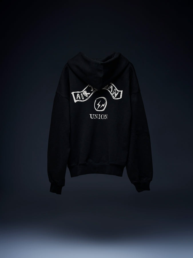 The collection will also feature apparel that features branding from Jordan Brand, Union Los Angeles, and Fragment. The apparel collection is centered around a white T-shirt that features both Union Los Angeles and Fragment branding on the sleeve. The long-sleeve shirt, similarly, features the brand’s logos- this time, though, along the chest.